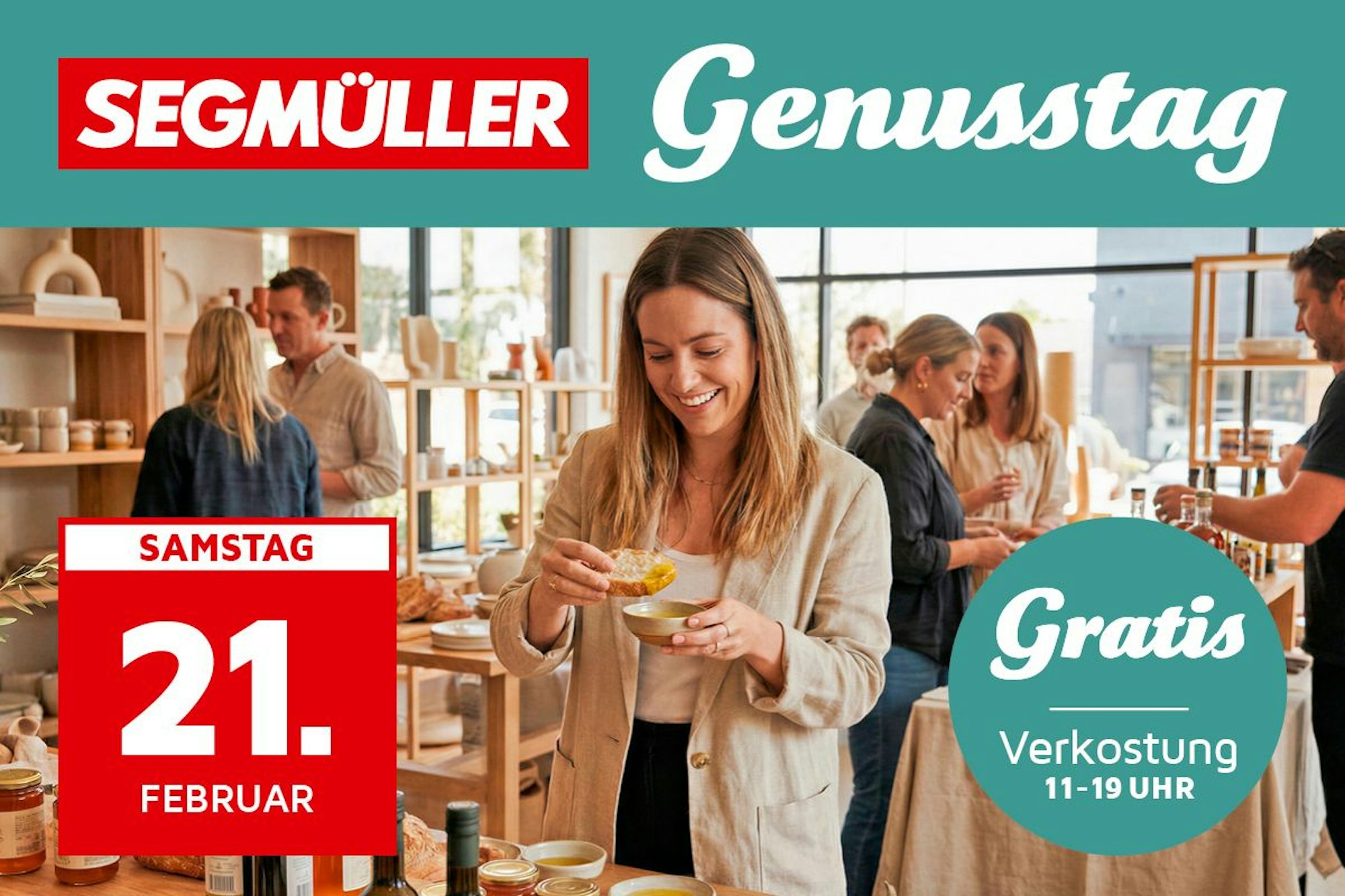 Am Samstag, den 21.02.2026, erwarten Besucherinnen und Besucher im SEGMÜLLER Einrichtungshaus in Pulheim zahlreiche Schmankerl von regionalen Anbietern. Ob süß oder herzhaft, mild oder scharf – der Genusstag lädt zum Probieren und Genießen ein.
